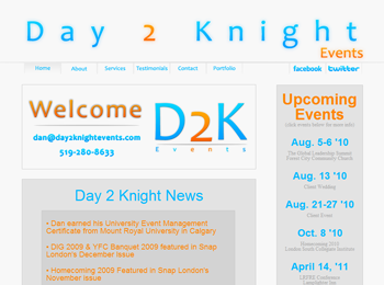 Website for Dan Knight, owner and founder of Day 2 Knight Events.